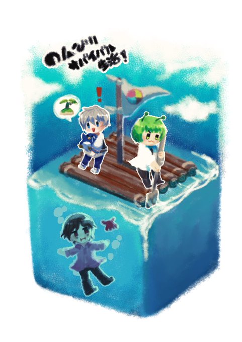 おらふくんの配信予定でぉにきと神とななこさんとおらふくんがRaftでサバイバルするって書いてあったのでいてもたってもいられず勢いでファンアート! めっちゃ楽しみ~~~ #高田大好きちゅちゅアート #なな湖大好きちゅちゅアモアス #たけぉぇかき #見るかもわからん