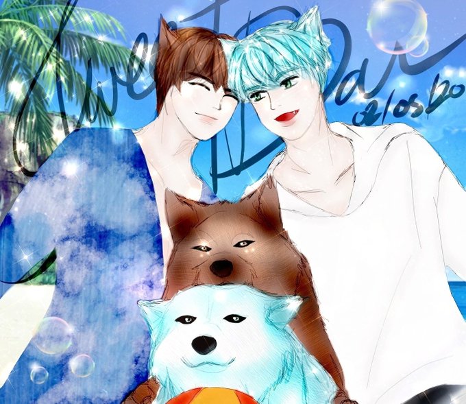Week 6 #เอถีณีสัปดาห์ศิลป์ Theme: Animals Title: Mingi & Yunho on the Beach🏖️ มาตามรีเควสคุณฉัตร @minechaechae ค่า^^ น้องหมาป่าเล่นด้วยกันบนหาดทรายในวันที่ฟ้าสดใส #คู่แฝดไททัน #YUNHO #MINGI #윤호 #민기 #ATEEZfanart #ATEEZ