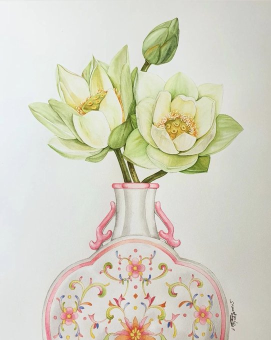 "Waterlilies and Porcelain" No3 Watercolor on paper 31×41 cm #Waterlilies #porcelain #chineseporcelain #Art #botanical #illustration #watercolorpainting #watercolor #paint #nymphaea #บัว #lotus #flower #꽃 #꽃그림 #물감그림 #그림 #ดอกบัว #ดอกไม้ #สีน้ำ #一朵花 #水彩画 #莲花