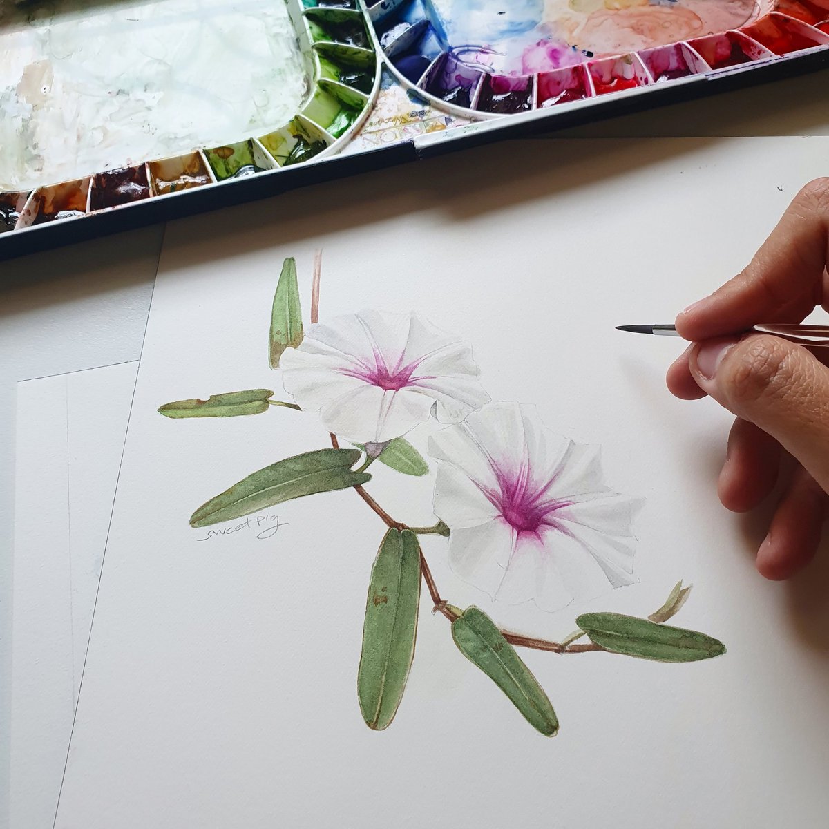สวัสดีค่ะ ชื่อหมูหวานนะคะ งานหลักๆเป็นเทคนิกสีน้ำค่ะ เน้นภาพดอกไม้ ธรรมชาติ กับสัตว์ (ดอกบัวจะเยอะหน่อย) ตอนนี้ก็กำลังลองฝึกกวอช และDigital เพิ่มอยู่ค่า หวังว่าอนาคตจะได้ลองทำอะไรใหม่ๆไปเรื่อยๆ ยินดีที่ได้รู้จักค่า /มาจอยกัน เริ่มเลอออ #คุยกันคุณนักวาด