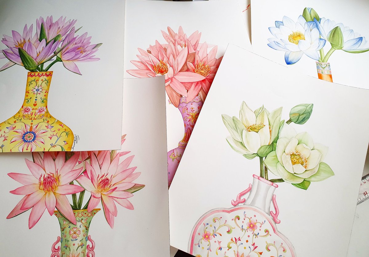 "Waterlilies and Porcelain" No2 Watercolor on paper 31×41 cm #Waterlilies #porcelain #chineseporcelain #Art #botanical #illustration #watercolorpainting #watercolor #paint #nymphaea #บัว #lotus #flower #꽃 #꽃그림 #물감그림 #그림 #ดอกบัว #ดอกไม้ #สีน้ำ #一朵花 #水彩画 #莲花