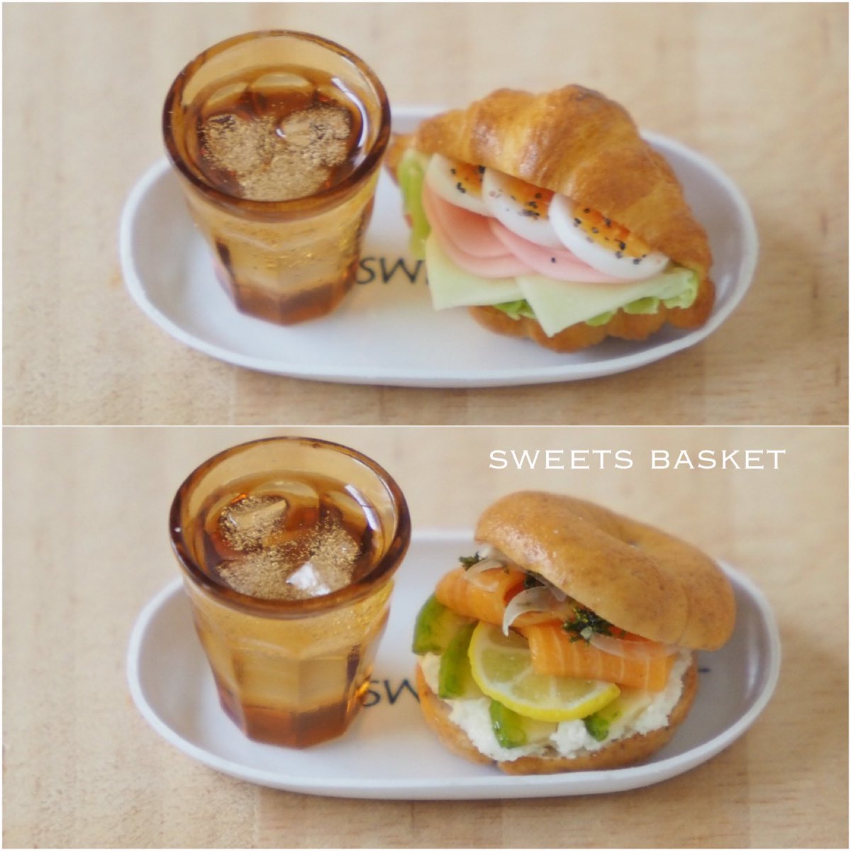 「三角サンドイッチセット」🥪🆕 具材は以前のと同じですが今度はホワイト、ブラウン2色の食パンで作りました😊 こちらのセットは6月8日(土)のミニチュアショウで販売させていただきます🙇♀️ #東京ドールハウスミニチュアショウ