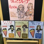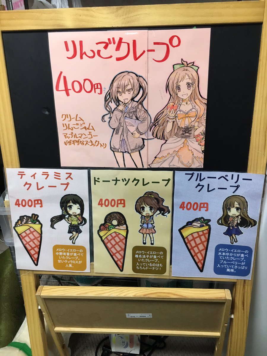 おやつどきですね!シンステで提供するクレープのお品書きができました! プリコネでデレマス コラボをしているみたいなので、ニュージェネの3人のクレープを出します。戦利品とともに食べに来てね! #cin_stage