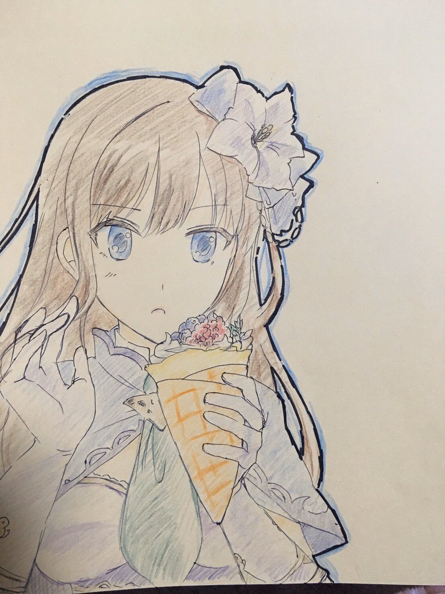 シンステでのクレープメニューの絵ができました!今回はプリコネでデレマス コラボしているとのことで、そこで出てきたクレープを再現します。明日にはメニューの完成版ができます。 #cin_stage