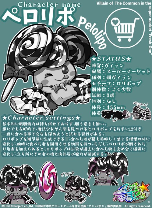 #絵師が本気でボードゲームを作る企画 #イラスト 🍭キャラクター設定を公開するよ!🍭 この子の名前はペロリポ🍬 ロリポップが大好きな、スーパーマーケットのヴィランだよ😈 応援よろしくね🍭💕 ↓企画詳細はこちら↓ @MUGENProject_R4 twitter.com/swimmin_0525/s…