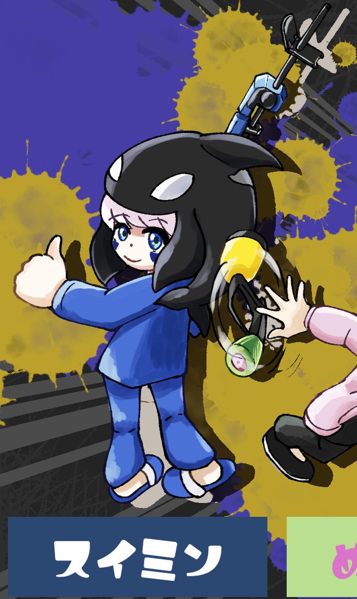 #スプラの持ち武器晒す見た人もやる 流れてきたので過去絵の切り抜き置いておきます。 私の持ち武器はリッター4Kです。 あんまりボム投げとかしないでくれると嬉しいです🥲 横にいるマニューバー使いは一体…?