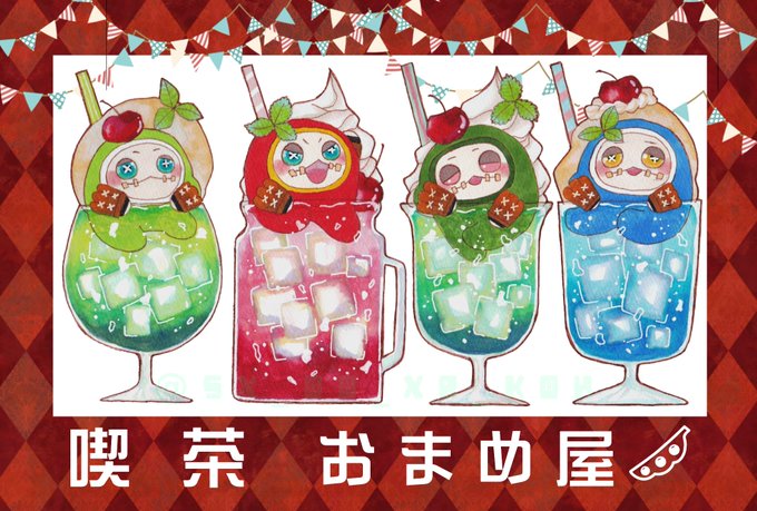 第五/喫茶おまめ屋の「クリームソーダ」 おちび傭兵が一生懸命作りました!期間限定なので是非お店に寄ってね! (※これはフィクションです) #第五人格イラスト #IdentityVfanart
