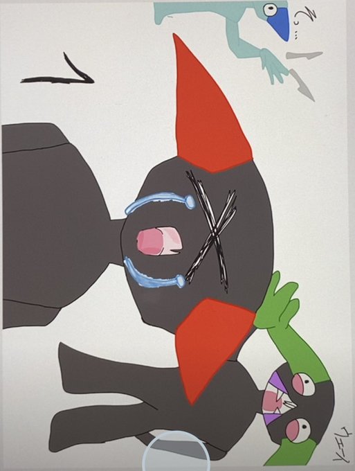 1 1 #ねこのティーチくん サムくんとコバヤシさんが喧嘩しているのを描きました。色が塗られていないのとサムくんが下手になってすいません 23/02/22 20:17