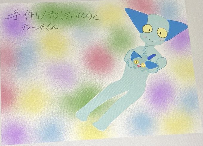 1 5 #ねこのティーチくん 寝てるティーチ君と、人形を持っているティーチ君を描きました!ティーチ君人形は、手作り感を出すために目をボタンぽくしました! 23/04/13 18:48