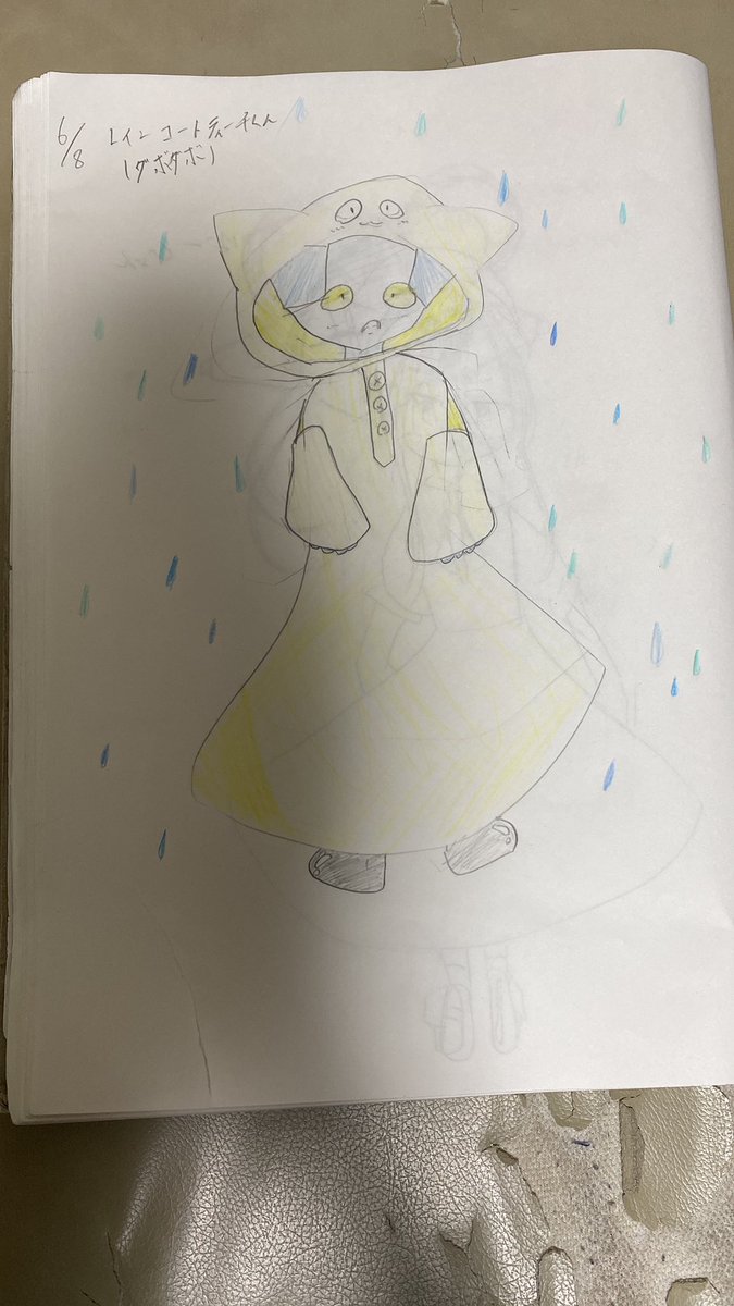 #ねこのティーチくん 雨の時期になったのでレインコート(ダボダボ)ティーチくんを描きました!