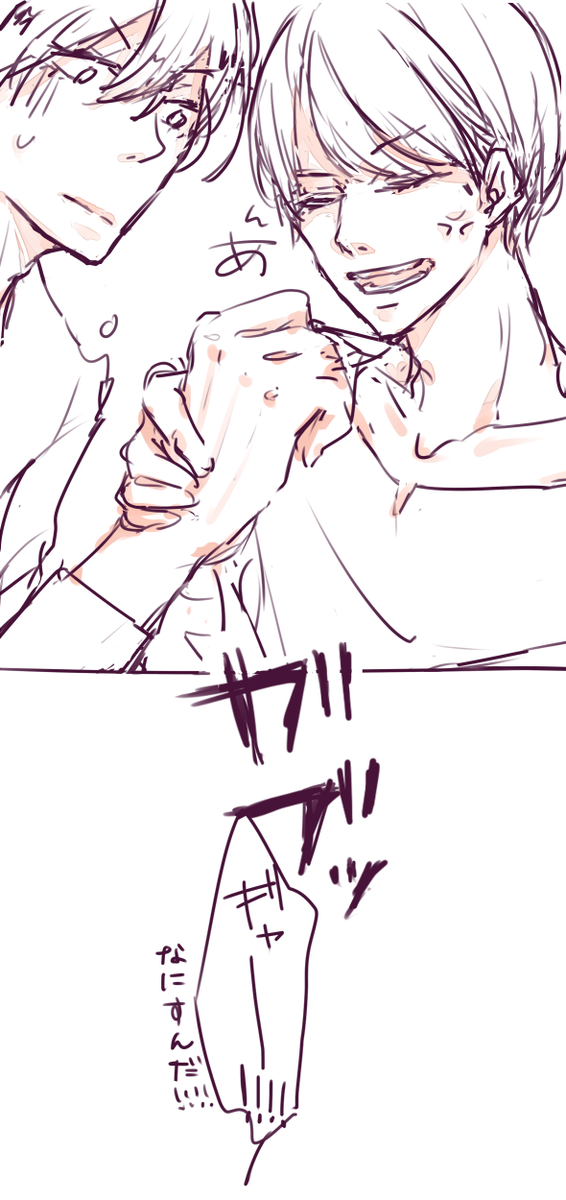 昨日の勢いで落書き。いわいさんと話してたシリル。怒ると噛みつく。