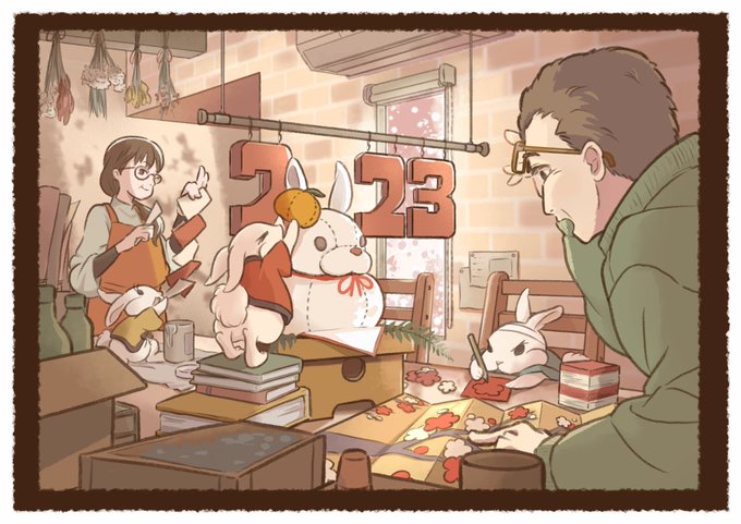 7 33 新年の準備🍊 実家のアトリエをモデルに、両親の年賀状用に描きました。 自分用はまだできていない… #絵描きさんと繫がりたい 22/12/30 00:34