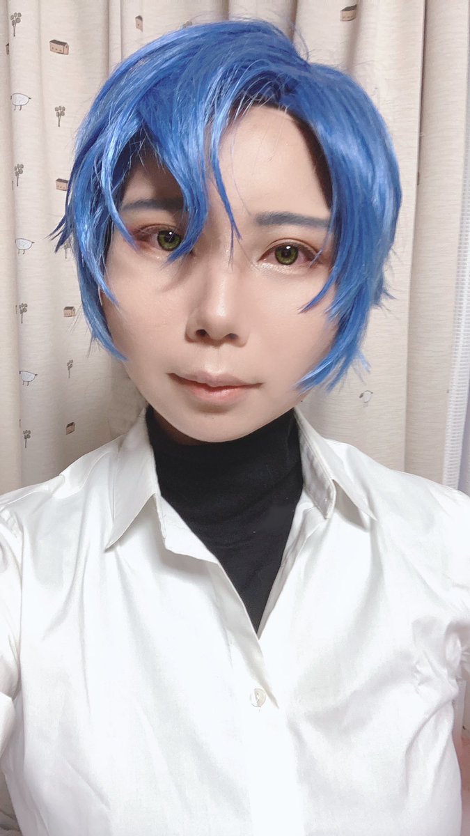 作りかけてたフィガロのウィッグ完成させて宅コスしてたけどむずかしいな もみあげもっと短くていい🤔 お酒は飲んでた
