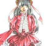 にちちゃんとお話しながらお絵描きした! いつもデザインしてもらってるから 今日はにちちゃんイメージのロリータでデザインしてみた テーマは「冬のお出かけ」