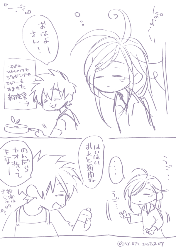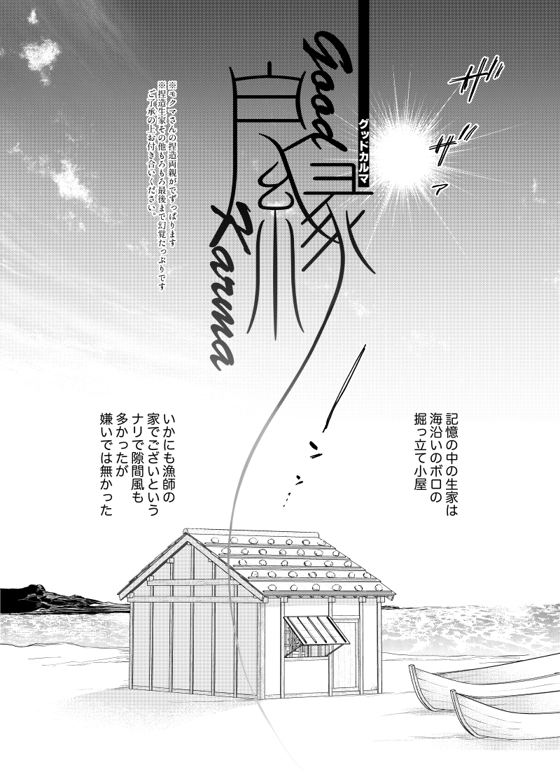 【3/21 新刊サンプル】良縁 / GoodKaruma ミッコンで出しそびれた本がようやく形になりました。 B5/44P/600円(イベント価格)/表2-3印刷 Pixiv=pixiv.net/artworks/96814… 発行は便宜上HARUコミ合わせですが、書店先行のフロマージュ専売頒布となります。(⇒続)