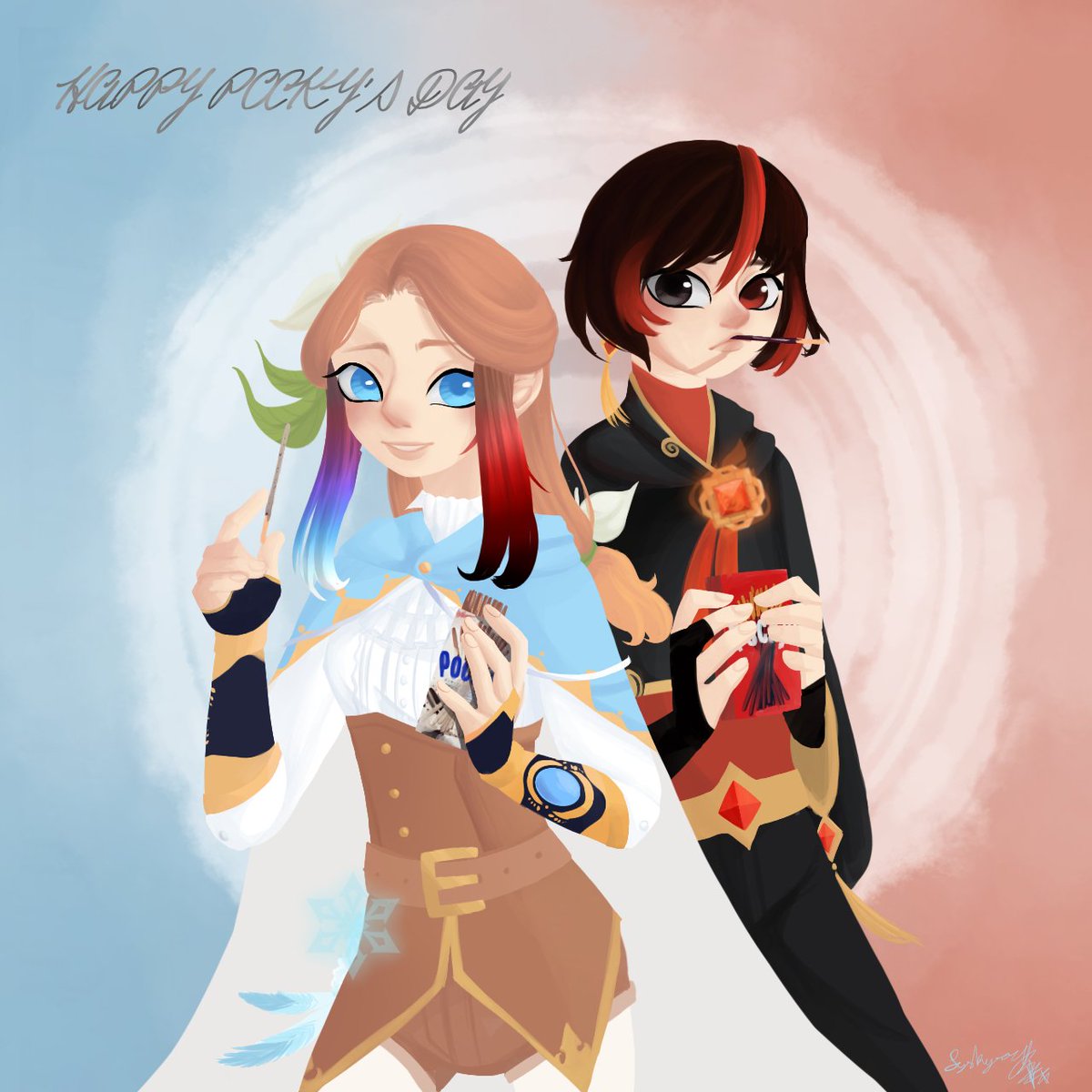 Gender swap Collaboration w/ @D43am3 @D43am3 draw and I colored Not so good. Have a nice day and night hope you like it! #badboyhalo #badboyhalofanart #bbh #mcytfanart #mcyt #au #Collaboration