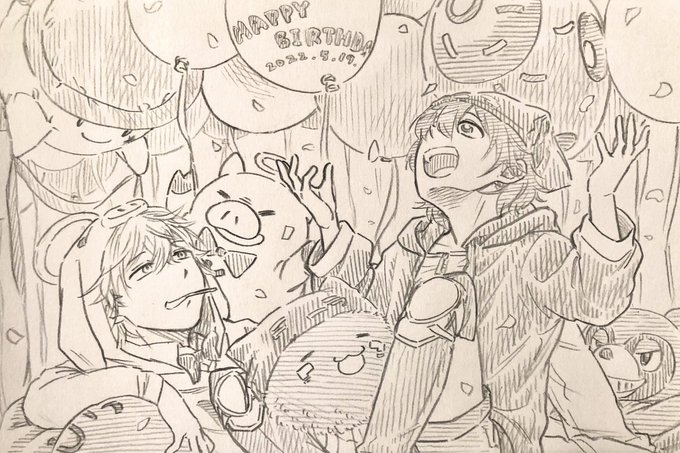 圧倒的に何もかもが間に合わなかったので、半年前に[年内に祝えばセーフだ!!!]という意思で上げたらもう年越してた過去絵を…(タグは付けてなかったので)(14tnおめござます!!!)🎉 #俺たちのむつーか絵せよ