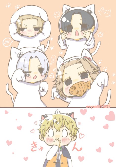 57 538 ☆マイ ※ねこパロ🐈 寝転がったねこの視線の先には、、大好きなたい焼きを食べてる大好きなあの子。 23/05/05 02:13