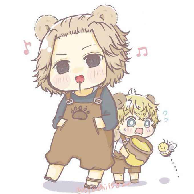 ☆マイ武 ※くまパロ🧸 いちご味の飴を舐めてはご機嫌なくまと、ハチミツを守るこぐまっち♫