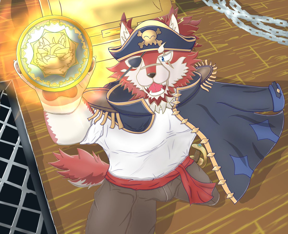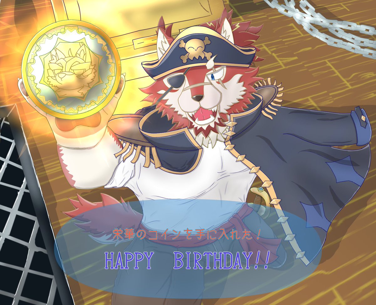 海月 太狼(@PHTcRShj3ZfDvLv)様お誕生日おめでとうございます! 誕生日プレゼントになるかはわかりませんが誕生日プレゼントとして海賊オオカミさん描きました! サプライズには…できなかったね…
