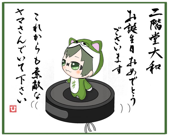 大和さんハピバ!またまたすいません。ひろんさん(@n163hiron)のお書道とコラボレイションさせて頂きました!ありがとう御座います、字素敵☆&おめでとう二階堂!絵画はIDOLiSH7公式プロフィールの好きなものに則って。楽なものなので武蔵に乗るドンヤマ #二階堂大和誕生祭2023 #二階堂大和生誕祭2023