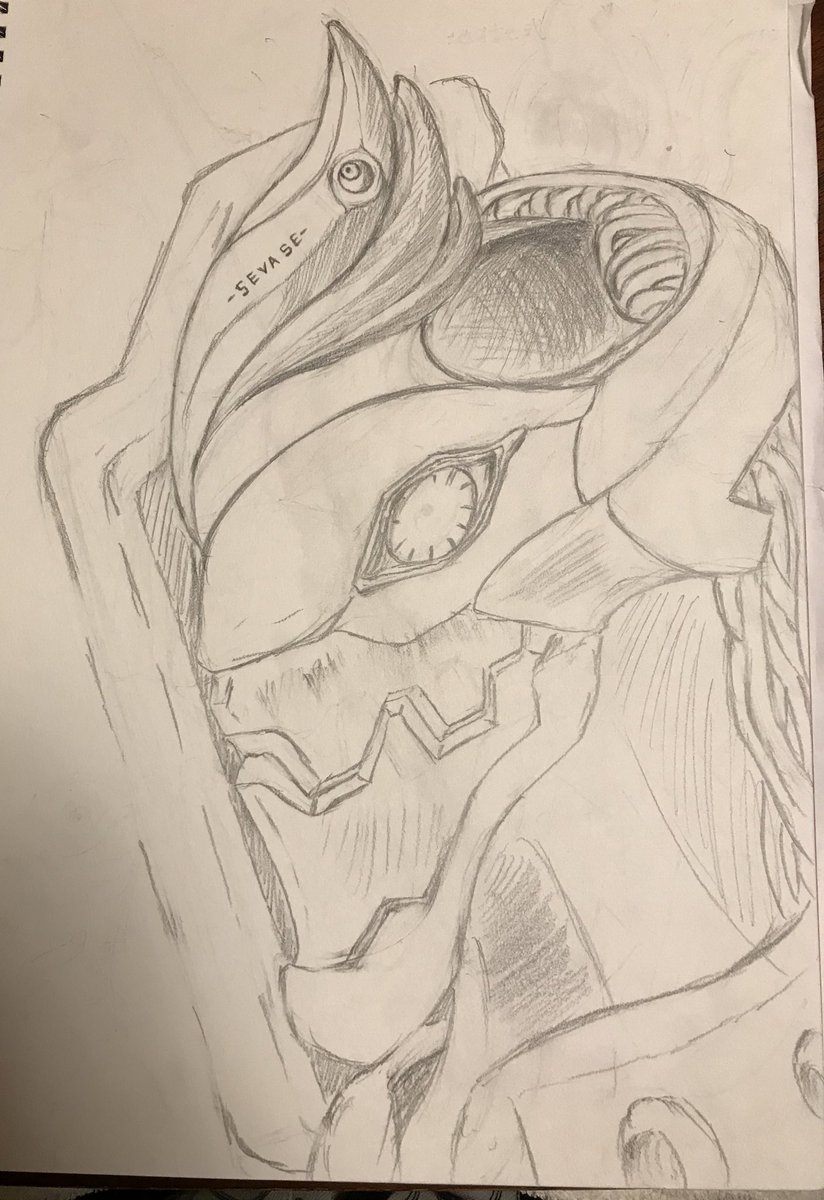 0 5 #ヘル絵スタ 最近流行りのアーマーを描いてみました(下書き) 20/05/12 00:34