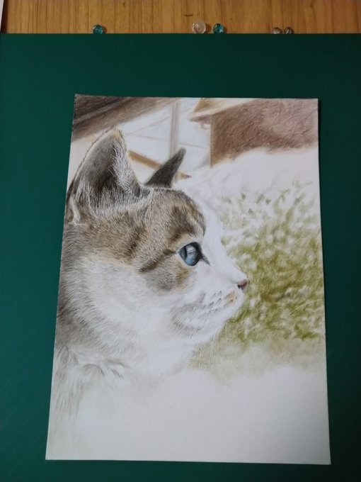 #絵描きさんと繋がりたい #色鉛筆画 #犬画 完成になりました。デッサンに問題あり…描き直しをしました。とにかく素人の私は皆さんの絵やライブ配信等が師匠。コツコツ描き続けて少しでも画力が上がれば…