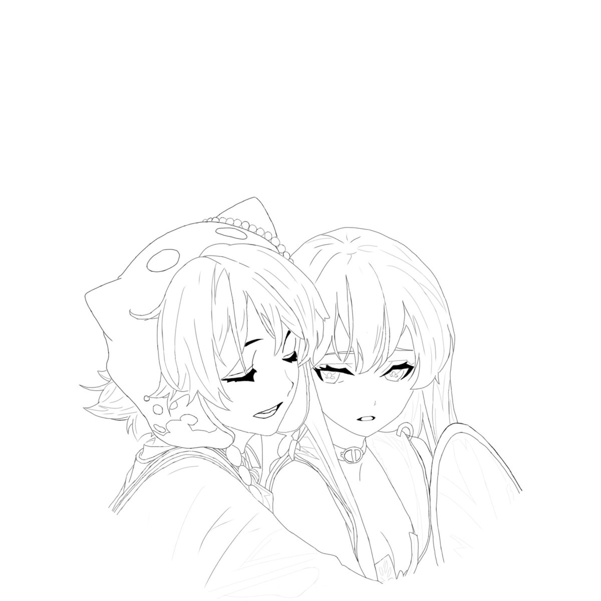 2 9 とりあえず描いた(背景は写真) 『黄昏時の空とエスカ&ロジー』 ちなみに元の線画はこちら‼︎! #アトリ絵 #エスロジ #らくがき 23/02/02 11:32