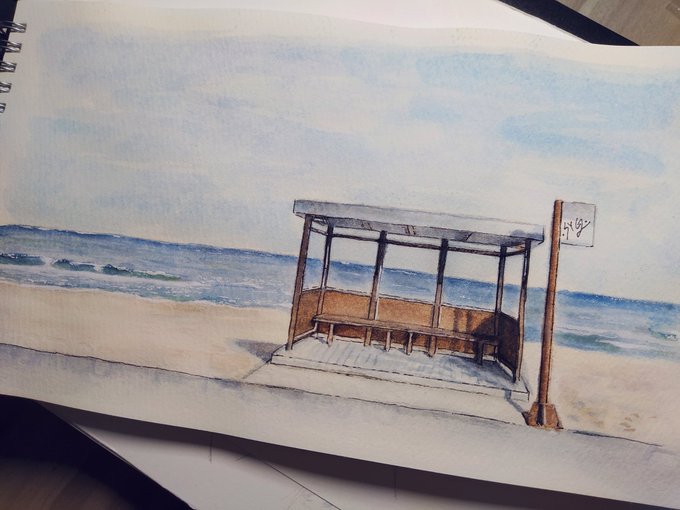 Imagine sitting at the bus stop, listening to the waves 💜 Peaceful #SpringDay #BTS #btsfanart #방탄소년단 #btsart @BTS_twt