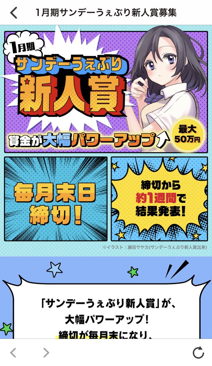 サンデーうぇぶり新人賞のバナーイラスト描かせていただきました。 久しぶりに1作目の守谷さん☺️ 今年はイラストにも力を入れていきます!