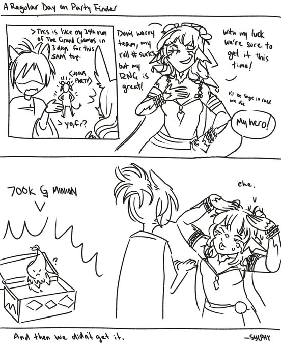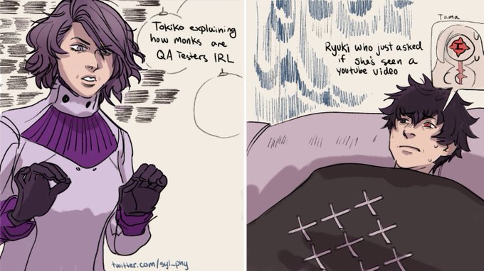 hello #PortfolioDay, I'm sylphy, a freelance illustrator out of New England. I do a lot of thumbnails and illustrations in various art styles. I really like to draw funny things about anime, action games and ffxiv 🪑 #PortfolioDay2023