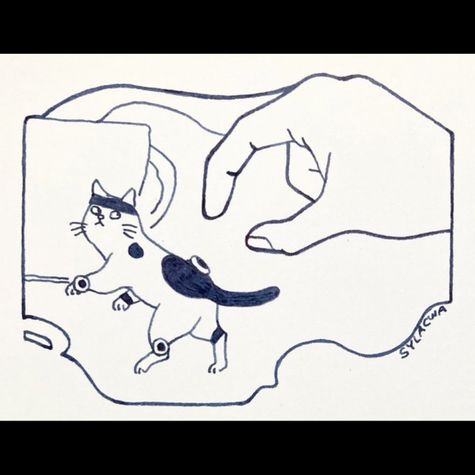 🐈猫画展示中🐈⬛ 〜12/29 上野駅ビルB1F WIRED CAFEアトレ上野 🐈展示終了までしばしば作品紹介の投稿おじゃまします🐈⬛ twitter.com/sylacwa/status… #ペン画 #絵 こちらは冷たい空気感を残したくて彩色なしに❄️