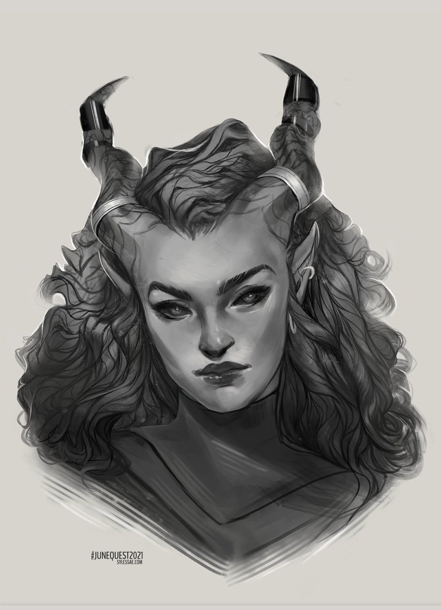 Happy start to #Junequest2023 c: Starting off strong with Nayrua, a sea elf who loves playing the harp for our lovely patron, Sarah 💛 ✨#Junequest Sketch #1