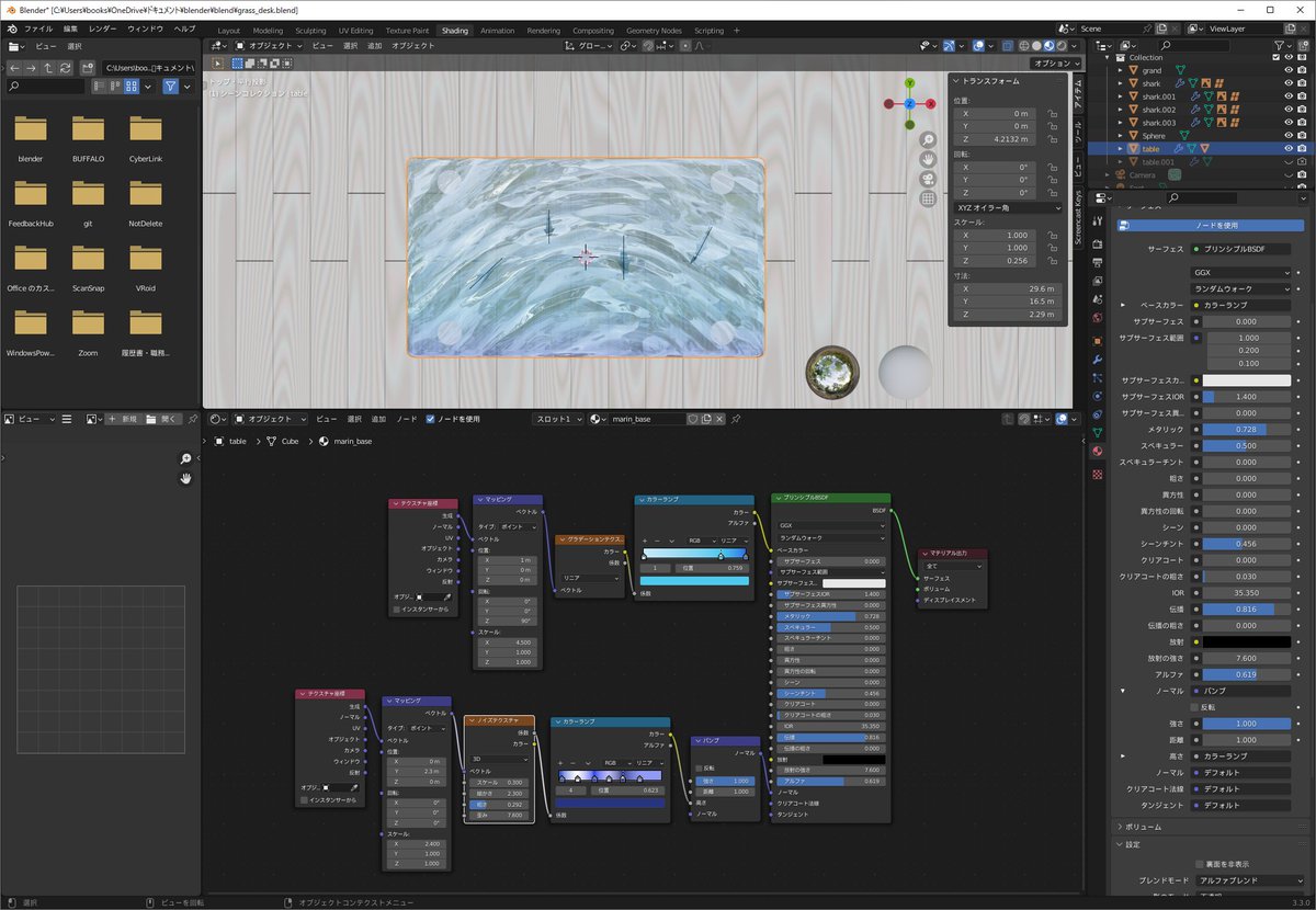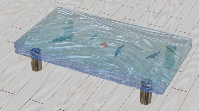 157日目「海のガラステーブル」 #Blender3d #blender #blender初心者 #100日チャレンジ #200日チャレンジ 水面はグラデーションテクスチャとノイズテクスチャで表現しています