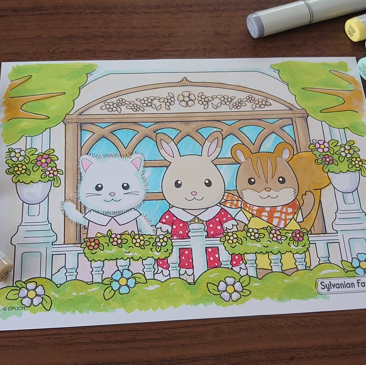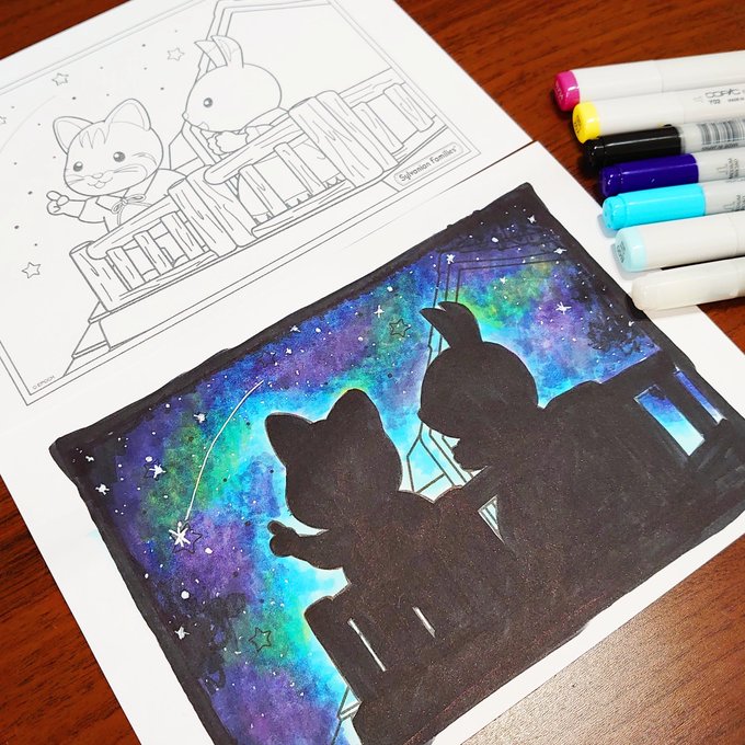 ぬりえが楽しいです🖌✨ ふつうに塗ったあとキラキラに塗り重ねました😳 #シルバニアファミリー #おうちでシルバニア #塗り絵 #コピック