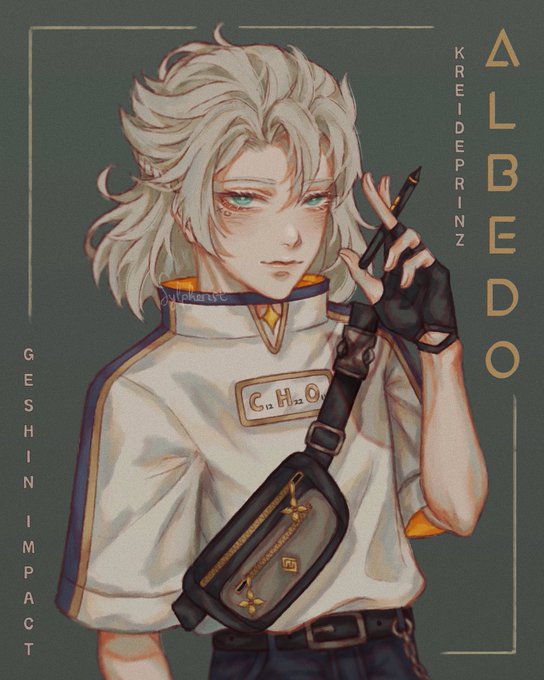 happy new year guys! here’s Albedo in modern au outfit design i made bc im his simp now (besides xiao) 🙈 btw if u guys are wondering whats written on his clothes, its C13H22O11 = Sucrose! 😉 ~ #Albedo #GenshinImpact #genshin #genshinimpactfanart #Genshinfanart #genshinimpactart