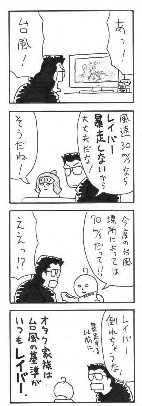 126 184 パトレイバーの日も台風も近づいて来ているので、昔描いた4コマを。 #パトレイバーはいいぞ 18/08/07 23:32