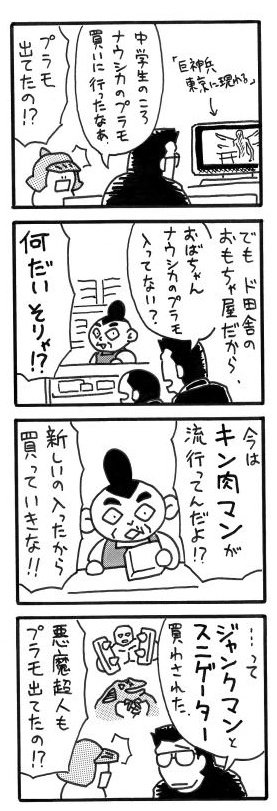 ナウシカのプラモの話題で思い出した、昔描いた4コマ。王蟲欲しかったなあ。