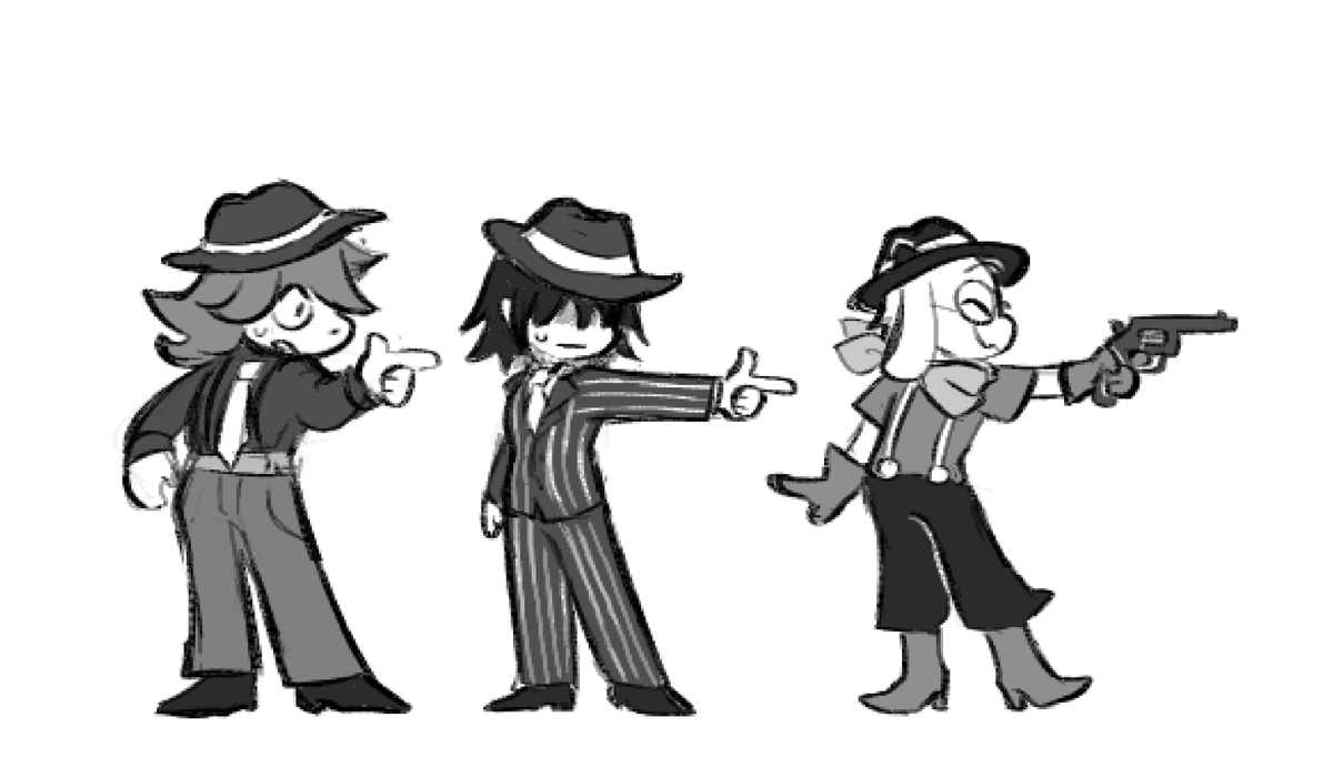 392 3746 a sketch page of outfits for the murder time trio in royaul 23/03/09 01:00