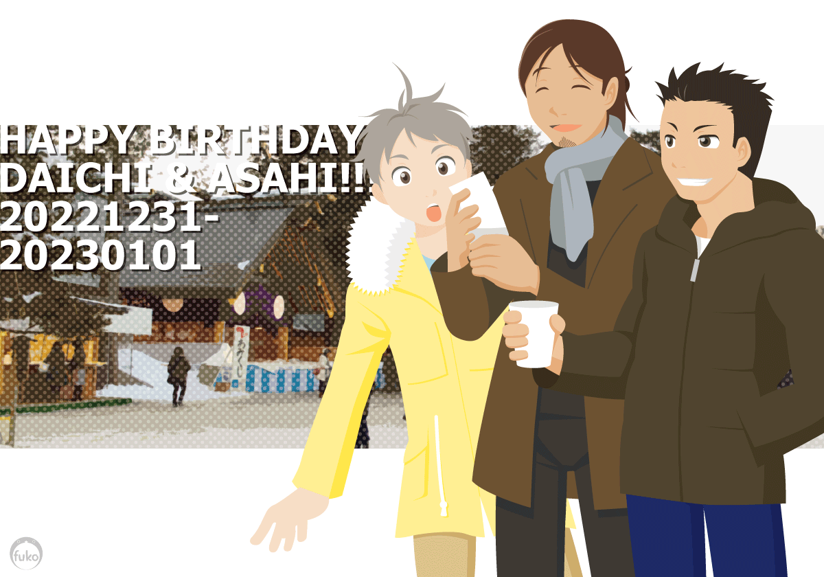 旭さん誕生日おめでとう! 隣の老犬の健康まで祈ったりおみくじの結果にすらびびってた繊細さが好きだけど、今は凶引いても笑い飛ばせるくらい強くなってるのかな… 1日遅れだけど大地さん誕も便乗お祝い! #澤村大地生誕祭2022 #澤村大地誕生祭2022 #東峰旭生誕祭2023 #東峰旭誕生祭2023