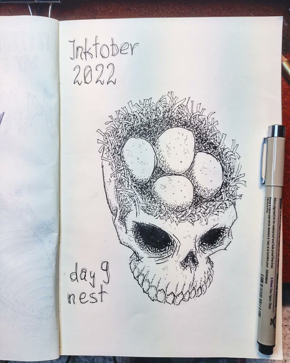 inktober day 9: nest #inktober #inktober22 #inktober2022 #nest #skull