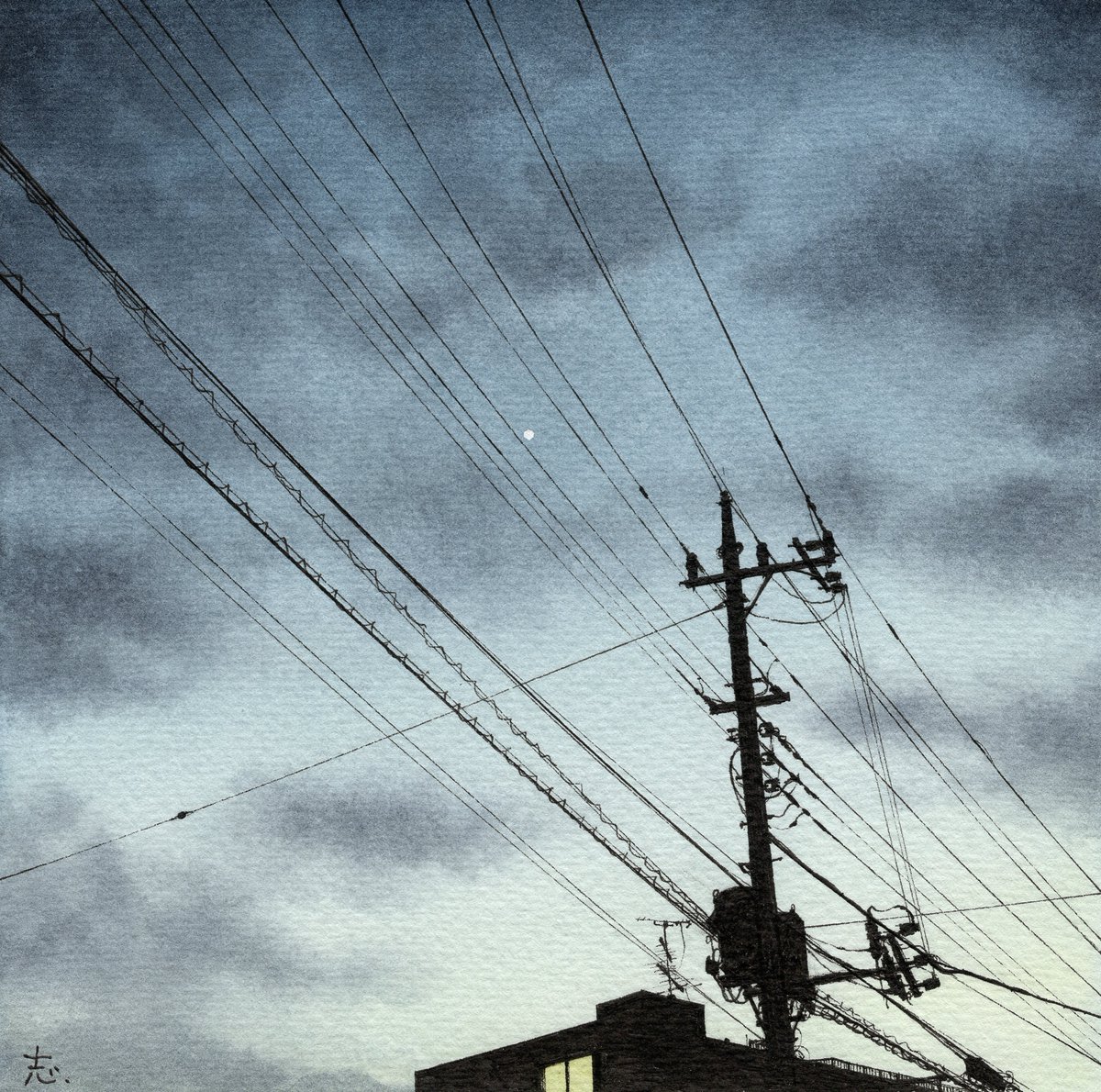 3 26 電柱電線と最後に星をちょんっと入れて完成🌟 #shihonoe #イラスト #アナログイラスト #水彩画 #ペン画 #電柱と空 23/06/11 15:54