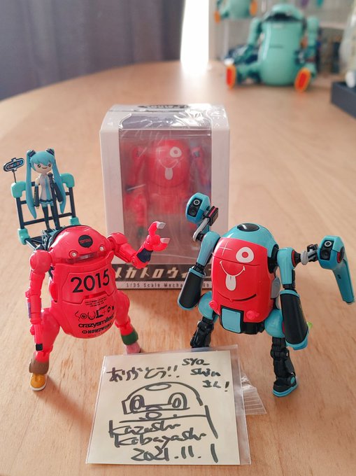 @kobax27 わーい、ありがとうございます。 帰宅していつものもやりました おめでとうございます返し返し~! #千値練メカトロウィーゴ8周年 #メカトロウィーゴ