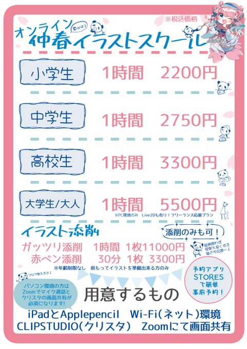 【オンライン🖌仲春イラストスクール🖋OPENしました!!🌸🐼】 coubic.com/harurium #オンライン講座 #イラスト講座 #仲春イラストスクール 小学生から大人まで誰でも1時間づつ受けられます! 小学~高校まではiPadとApplepencilとWi-Fi環境があれば参加できます! #深谷栄一 や #重忠様… twitter.com/i/web/status/1…