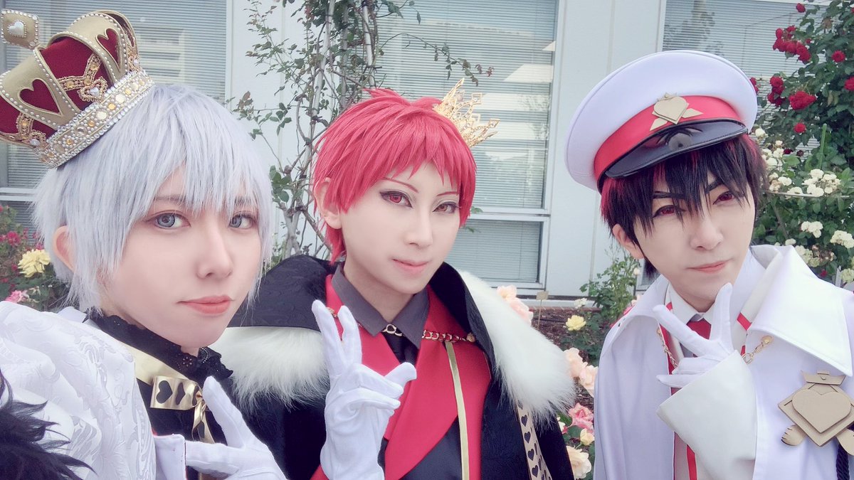 19 55 【おそくほう/cosplay】 黒子のバスケ🏀不思議の国のアリス まさかバラ庭園で合わせできるとは思わなくて、王様の衣装と王冠と王笏めっちゃ頑張ったので見てほしい!!! 23/05/21 19:50