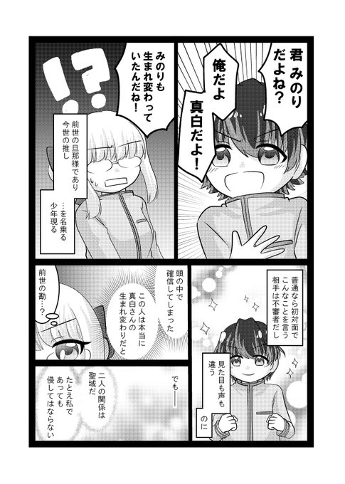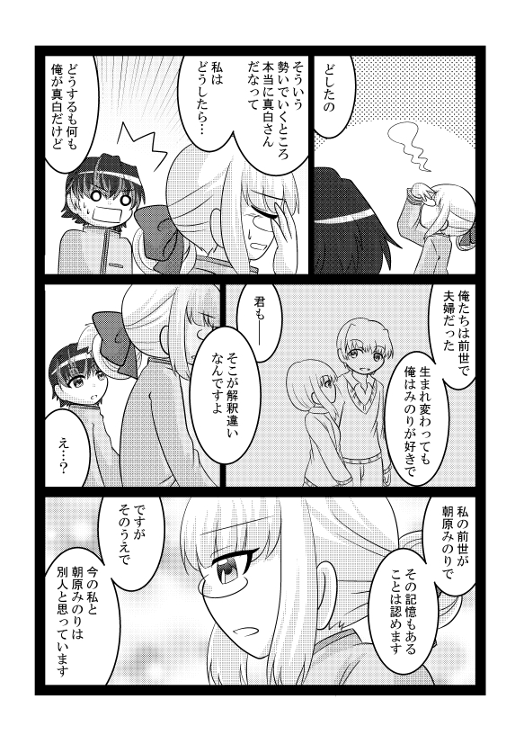 [創作漫画] 朝の配信でコツコツ描いている、夏コミ新刊の創作短編です。(引用RTから続き) 転生×解釈違いコメディです。 🫐続きは毎朝8:30からYoutube(youtube.com/c/NinaMatsuo27…)、SHOWROOM(showroom-live.com/r/7f5ff3621973)で描いてます! #創作漫画 #創作男女 #漫画が読めるハッシュタグ