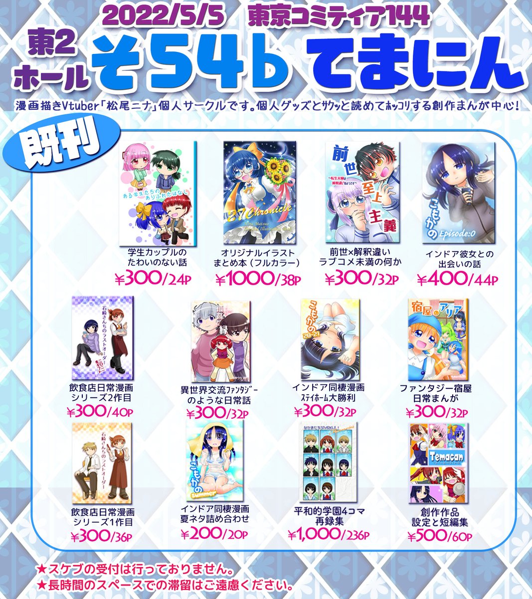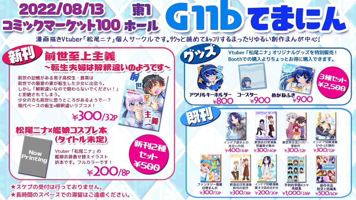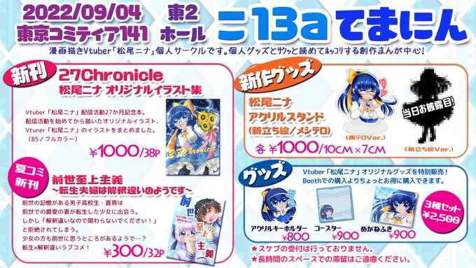 来週!9/4開催の東京コミティア141、お品書きです! 持っていくものが多すぎて2枚組になりました…!(2枚目はツリーにて) 新作は ⭐オリジナルイラスト本 ⭐アクリルスタンド2種 です! 夏コミ新刊の創作漫画「前世至上主義」もコミティア初頒布です! #コミティア141 #コミティアお品書き