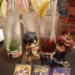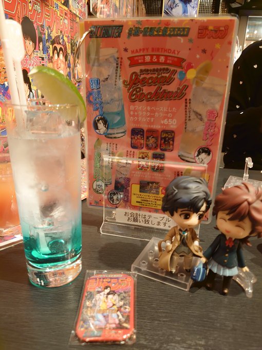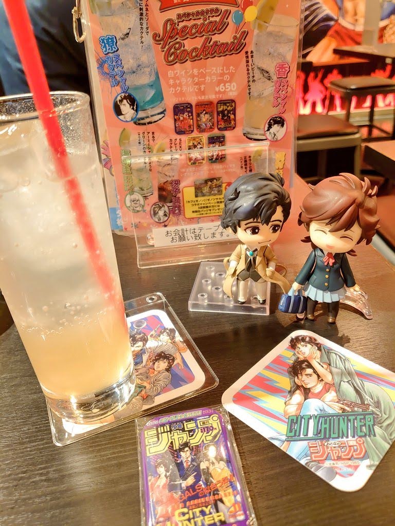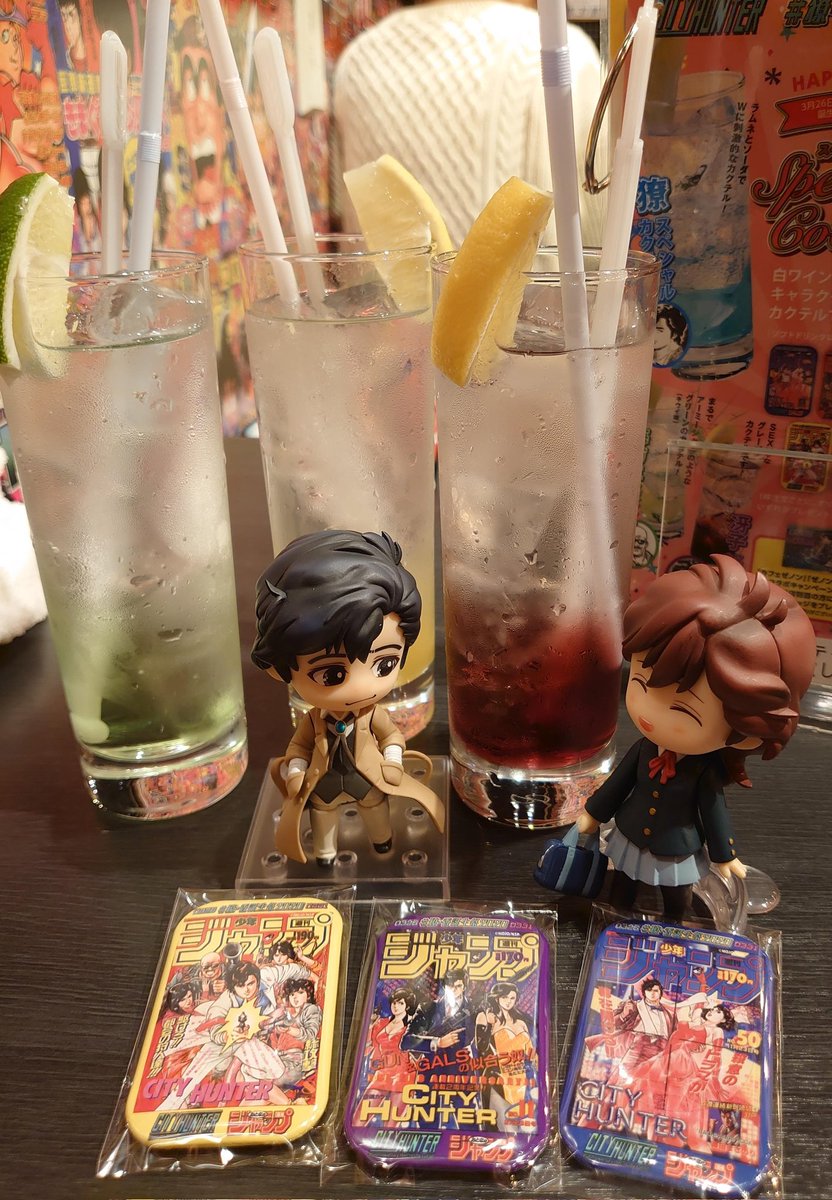 #深夜のねんどろ撮影60分一本勝負 5/12【のみてろ】【フライング】 3年前ジャンプ酒場でのシティーハンターコラボカクテル。全5種類制覇しました。 獠ちゃんのラムネと香ちゃんのピーチがアルコール低めで飲みやすかったです🥰
