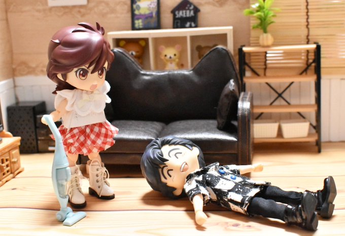 #深夜のねんどろ撮影60分一本勝負 5/9【ころがる】【フライング】 香「獠!そんなでかい図体で転がってたら掃除のジャマよ!」 獠「香ちゃんヒドイ〜💦床冷たくて気持ちいいんだもん。そろそろクーラー付けない?」 香「付けない!」