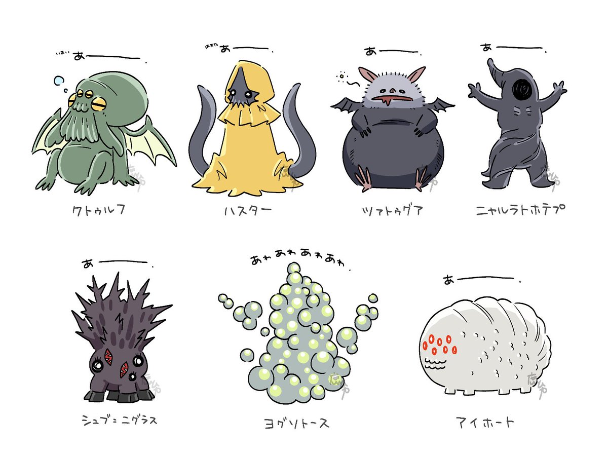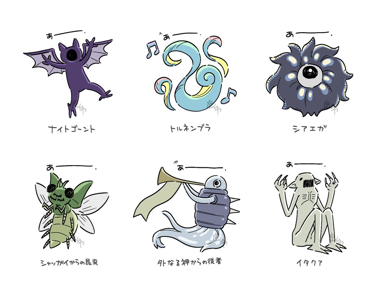 神話生物を清書したよ2 (イタクァさんはおっきいので座ってもらった)
